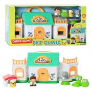 в комплекте здание клиники, фигурка врача, фигурки животных, весы, аксессуары.
