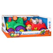 Маленького тракториста можно посадить за руль, а при нажатии на него раздаются различные звуки.