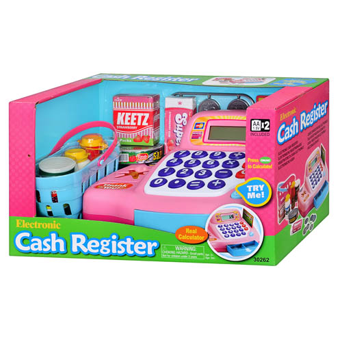 Пусть Ваш малыш почувствует себя работником супермаркета. Теперь можно посчитать сумму покупки – касса оборудована самым настоящим калькулятором. Ребёнок нажимает на кнопочки, раздаётся пикающий звук, а на жидкокристаллическом дисплее кассы чётко видна сумма.