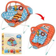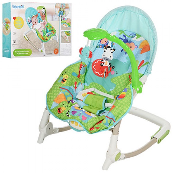 Кресло-шезлонг обеспечено дугой с подвесными игрушками, которые притягивают внимание ребенка, развивают зрительные навыки и моторику, имеет успокаивающие мелодии, специально разработан для укачивания малышей, экономит родителям время, позволяя одновременно успокаивать/укачивать ребенка и заниматься своими делами.
