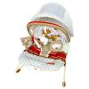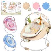 Кресло-шезлонг обеспечено дугой с подвесными игрушками, которые притягивают внимание ребенка, развивают зрительные навыки и моторику, имеет успокаивающие мелодии, специально разработан для укачивания малышей, экономит родителям время, позволяя одновременно успокаивать/укачивать ребенка и заниматься своими делами.
