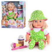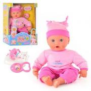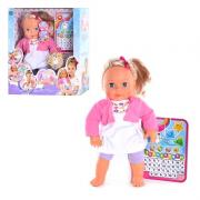 Играет в игру. Глазки у куколки магнитные, моргает при наклоне. Шевелит ртом, имитируя разговор. Реагирует на прикосновение.