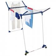 Ннадежная, устойчивая сушилка с откидными створками и с параллельными опорными ножками. Сушилки для белья выполнены из нержавеющих материалов с само очищающимися струнами для белья. Она очень легка в установке и занимают очень мало места в сложенном состоянии. Общая длина струн составляет 18м. Высота крайних струн 105 см. позволяет сушить длинное белье или брюки. Дополнительно установлены ролики на двух ножках.