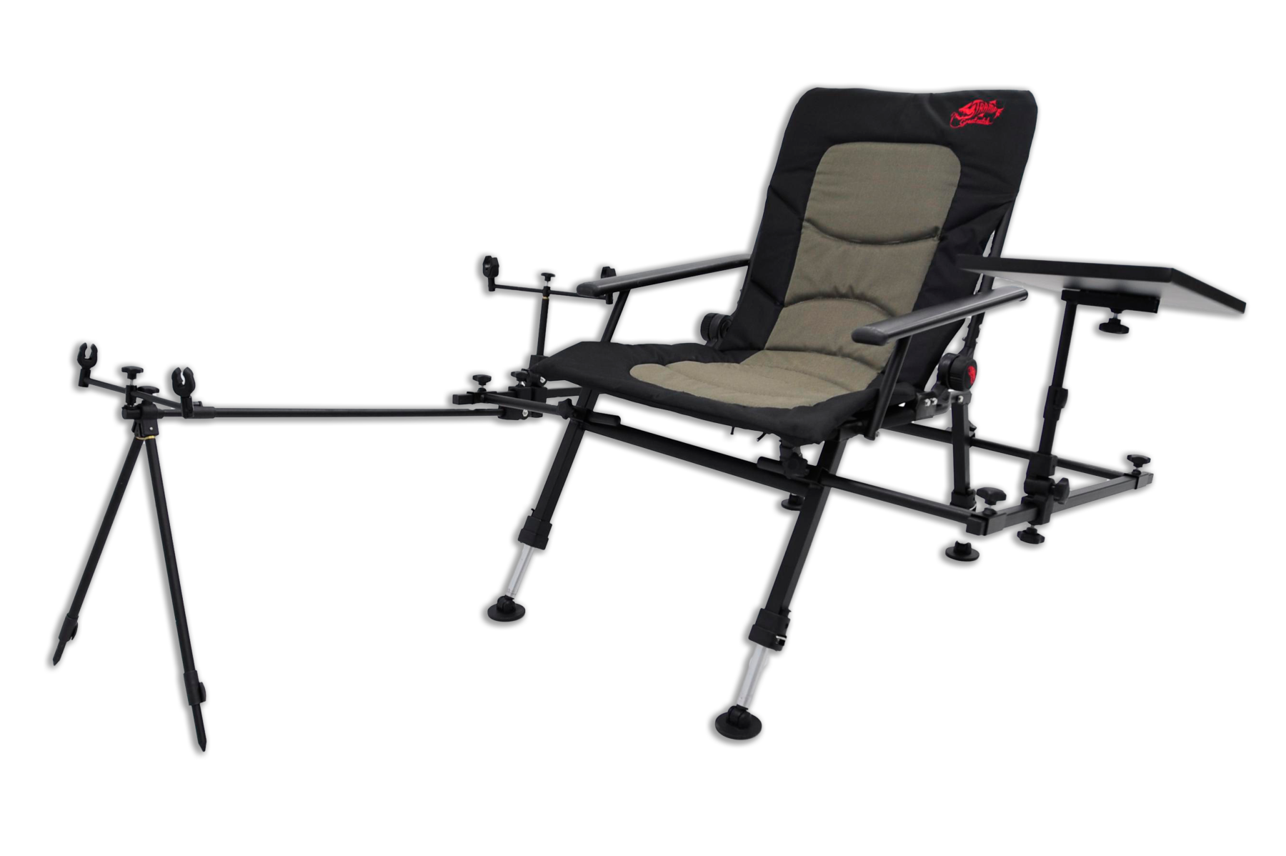 Вы можете весь день ловить рыбу из комфортного кресла с широкой спинкой, а перед сном легко подсоединить к нему дополнительный модуль и с комфортом провести ночь на большой удобной раскладушке.