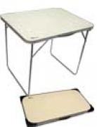 Изготовлен из алюминиевых трубок диам. 16 мм с порошковым напылением. Верхняя крышка изготовлена из MDF. Легко складывается до компактных размеров как единый комплект. Размеры: 80х60х79 см. Вес нетто: 3,57 кг. Допустимая нагрузка: 30 кг.