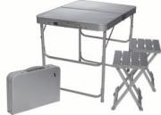 Изготовлен из алюминиевых трубок диам. 19 мм с матовым покрытием. Верхняя крышка стола с порошковым напылением. Легкий алюминиевый стол. Складывается до компактных размеров. В комплекте прилагается сумка для удобной транспортировки. Размеры: 70х70х70 см. Вес нетто: 3 кг. Допустимая нагрузка: 30 кг.