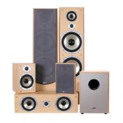 Комплект состоит из напольной фронтальной акустики и сателлитов центрального и тыловых каналов, позволяющими использовать комплект не только для прослушивания дорожек Dolby Digital и DTS, но и стерео записей. Он удивит вас мощным звучанием в кино и детальным в музыке. Комплект оснащен AM/FM тюнером и декодерами окружающего звука: Dolby Digital, DTS, DPL II, что делает возможным подключение к DVD проигрывателям не имеющим декодеров. Имееться магнитное экранирование фронтальной пары и центрального канала.