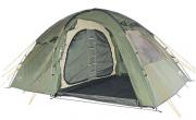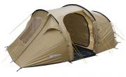 Комфортная кемпинговая палатка. Возможность входа в тамбур с трех сторон и дополнительный задний вход в спальное помещение обеспечивают эффективную вентиляцию. При неоходимости спальное помещение можно разделить быстросъемной перегородкой. Дополнительный комфорт создают пристегивающийся пол и двухместное спальное помещение, подвешиваемое в тамбуре (входят в комплект). Возможно использовать только внешний тент, в котором боковые входа продублированы противомоскитной сеткой.