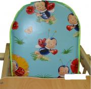 Сидение оснащается чехлом из ПВХ, который хорошо моется. Для дополнительного комфорта предусмотрена подставка для ножек. Чтобы обезопасить малыша, пересмотрены прочные ремни безопасности.