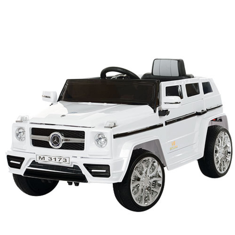 Детская машина оснащена двумя мощными независимыми моторами 6V/4AH (всего 12V/8Ah), по одному на каждом из задних колес. Детский электромобиль функционирует от кнопок на рулевом колесе, имеет MP3-плеер вход с регулировкой громкости и светодиодные фонари.