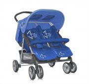 Прогулочная коляска для двойни Bertoni Twin blue - замечательное решение для деток – близнецов или погодков. Прекрасная коляска для прогулок в любую погоду и во все времена года, с современным дизайном для деток от 6 месяцев до 3 лет. Коляска Bertoni Twin имеет ремни безопасности, чтобы вашим малышам было надежно в ней. Колеса сделаны так, что вы сможете легко ездить как по ровной дороге, так и по песку или по траве. У коляски 6 колес, передние спаренные двойные колеса обеспечивают отличную управляемость и возможность фиксации, т.к. имеют возможность прокрутки на 360°, пружинная амортизация, задние колеса оснащены тормозами. Колеса пластиковые, диаметром в 20 см. Каркас имеет специальную пленочную оболочку, которая защищает ткань от загрязнения. алюминиевый, поверхность - анодированная и защищенная от загрязнений. Предусмотрены все необходимые возможности регулировки для удобства малышей в коляске – наклон спинки в несколько положений (причем автономно для каждого малыша), высота подножки. Капюшон коляски с карманом для мелочей регулируется плавно, сама коляска складывается одной рукой.