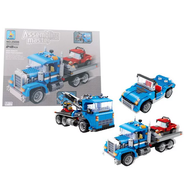 С конструктором Ausini Эвакуатор ребенка ждет увлекательное приключение, стоит лишь открыть коробку с цветными детальками.