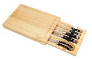 Лезвие заточено вручную и имеет штамп качества. Легко затачиваемые. Стильная деревянная колода (из нетропического дерева) с нескользящей устойчивой платформой. Эргономические ручки для безопасной и прочной хватки.