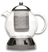 Термостойкое стекло. Подходит для посудомоечной машины. Материал подставки и крышки: нержавеющая сталь 18/10. Полировка: матовая. Заварочный чайник 13x19,5x13 см, вместимостью 1,3 л.