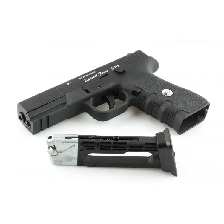 Borner 2022 является точной копией полуавтоматического пистолета Sig Sauer SP2022, принятого на вооружение многих вооруженных сил по всему миру как оружие снабжения. Это мощная модель в линейке пистолетов с источником энергии в виде баллончика CO2. Благодаря невероятно высокой начальной скорости пули стрелять по банкам либо мишеням очень весело. И цена на удивление привлекательная. Borner 2022 – идеальная модель начального уровня. Cделан из комбинации полимеров и металла, чтобы достичь баланса между силой и легкостью. Все основные внешние и внутренние механизмы сделаны из металла, в то время как корпус изготовлен из ABS пластика. Схема “подвижного ствола” обеспечивает надежность подачи шариков и минимизирует утечку газа при выстреле за счет отсутствия зазоров при ударе ствола по клапану.