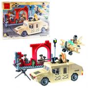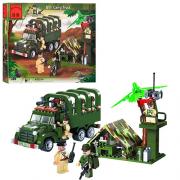 Из 308 элементов конструктора Brick Военный лагерь можно собрать настоящий грузовик для транспортировки спецназа и военный блок- пост. В набор входит 7 фигурок солдатиков и инструкция сборки.