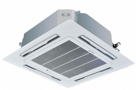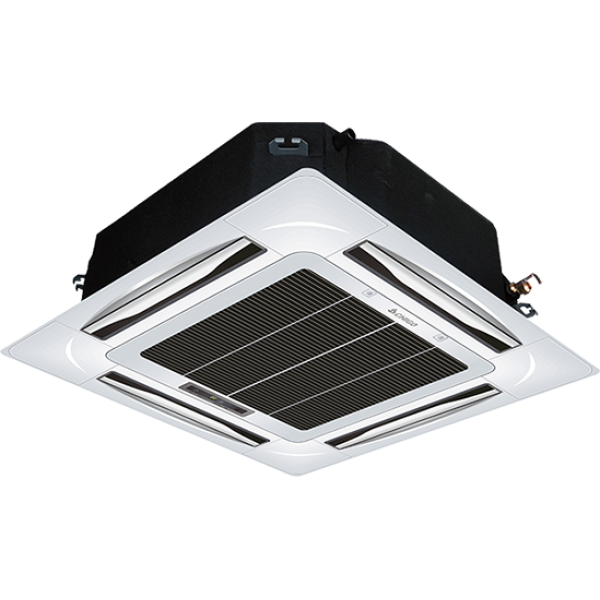 Кассетные четырех поточные кондиционеры равномерно по всему объему помещения распределяют воздух обеспечивая высокий уровень комфорта. Конструкция позволяет монтировать кондиционер в стандартный модуль подвесного потолка.