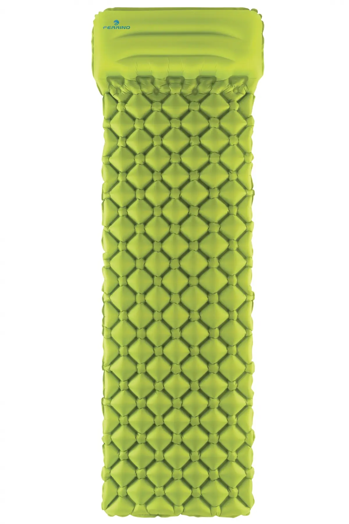 Ferrino Air Lite Pillow Mat Green (78247NVV) - надувний килимок з інтегрованою подушкою, яка надійно фіксує голову під час сну, а також має вбудований клапан підкачування. Насос для надування йде в комплекті (його можна використовувати в якості чохла для зберігання). Цей міцний килимок невеликого об’єму, виготовлений із нейлону Ріпстоп, надлегкий (лише 520 г). Численні роздільні камери, заповнені повітрям, повторюють контури вашого тіла, забезпечуючи максимально комфортний сон. Килимок надувний Ferrino Air Lite Pillow Mat Green (78247NVV) займає мінімум місця в рюкзаку в порівнянні з іншими видами туристичних килимків, що забезпечує значний рівень комфорту та більш високий рівень теплоізоляції.