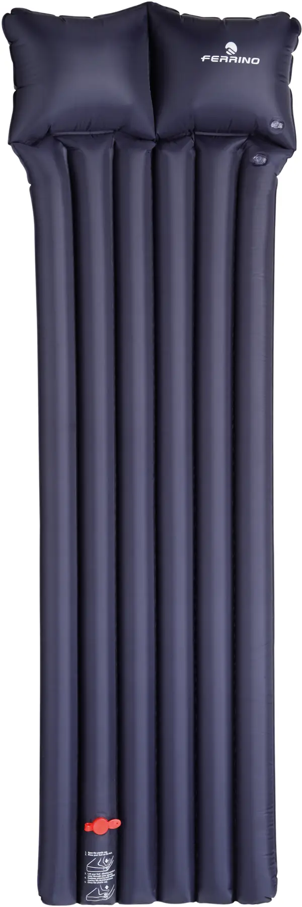 Унікальність надувного килимка Ferrino 6-Tube Airbed Dark Blue (78005HBB) полягає в наявності інтегрованої подушки, яка поєднана з килимком, а також має вбудований клапан підкачування. Поділена на 2 частини подушка надійно фіксує голову під час сну. Для більшої зручності килимок має вбудований механічний ножний насос, що дозволяє накачати його рукою або ногою. Надувний килимок займає мінімум місця в рюкзаку в порівнянні з іншими видами туристичних килимків, що забезпечує значний рівень комфорту та більш високий рівень термоізоляції.