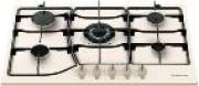 5 газовых конфорок: 1 конфорка с двойным рядом пламени и двойной регулировкой 1х0,4-5кВт, 2х1,9кВт (быстрый нагрев), 1х1,65кВт (ускоренный нагрев), 1х1кВт (вспомогательная)