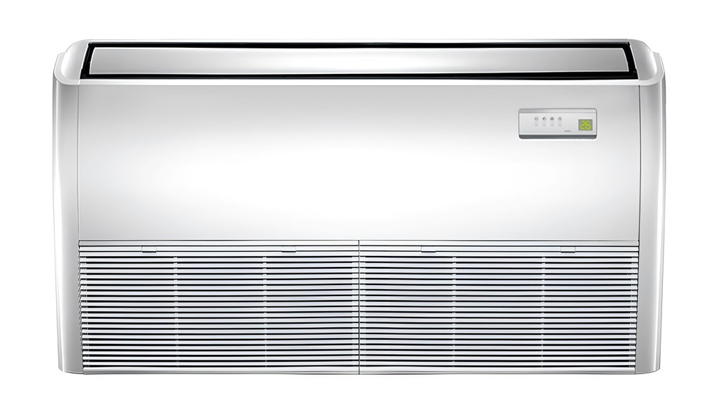 Это сплит-системы с таким внутренним блоком, который можно монтировать на потолке или стене, поэтому иногда их называют «консольные» или «универсальные». Основная раздача воздуха происходит только в 1-м направлении, дополнительное отклонение потока в стороны обеспечивают направляющие ламели с ручной регулировкой, отклонение воздушных потоков по вертикали можно отрегулировать посредством отклонения жалюзи. Все напольно-потолочные внутренние блоки снабжены пультом ДУ в комплекте поставки. Сплит-системы инверторного типа (с компрессором изменяемой мощности) становятся всё более популярны – преимущества инвертора в более точном регулировании температуры, циклов работы, повышенном энергосбережении. Проводной пульт и центральное групповое управление можно установить опционально.