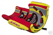Серия надувных аттрекционов с удобной спикой для диких и разухабистых гонок за катером. Аттракцион можно использовать на берегу как кресло для сонечных ванн. Прочнее нейлоновое покрытие с двойным швом и надувной баллон из ПВХ. Удобный разъем для быстрого соединения фала. Удобные ручки с неопреновым покрытием .