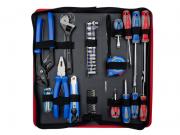 Электромонтажные кусачки с прорезиненными рукоятками обезопасят владельца при обслуживании высоковольтной сети. Пассатижи – универсальный инструмент, который заменит десятки накидных ключей и вспомогательных аксессуаров. Электрику не справится без отверток. Набор инструментов для работы с резьбовыми соединениями разных форм и размеров. Пара отверток снабжена индикатором тока. Набор торцевых ключей пригодится автомеханику, работающему с электропроводкой транспорта в труднодоступных местах. Многоцелевой инструмент – раздвижной ключ, поможет решить проблему с отсутствующими в наборе насадками, а также послужит в роли дополнительного зажима. Монтажный нож с обновляемой режущей кромкой и пятиметровая рулетка