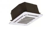 Данный тип внутренних блоков необходимо монтировать, сначала обеспечив установку самого блока, а затем, после зашивки потолка, устанавливать декоративную панель с воздушным фильтром и жалюзи, которые позволяют организовать раздачу очищенного воздуха в круговом направлении (дополнительные каналы по углам панели, обеспечивают более равномерный воздушный поток). Отклонение воздушных потоков по вертикали можно отрегулировать посредством установки жалюзи в нужном положении с помощью ПДУ (входят в комплект поставки). Все кассетные внутренние блоки оборудованы встроенными дренажными насосами.