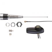 Подпружиненная четвертьволновая врезная антенна UHF-диапазона (70 см) требующая индивидуальной настройки после установки. В корпус крепления встроена вторая, приемная антенна предназначенная для радиостанций оснащенных приемниками системы глобального позиционирования стандарта GPS.