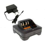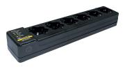 Шестиместное настольное зарядное устройство (Euro Plug) предназначено для зарядки литий-ионных аккумуляторных батарей радиостанций SL4000, SL4000e, SL4010, SL4010e, а также широкого ряда других серий аккумуляторов Motorola, кроме батарей с функцией IMPRES. При помощи специальных комбинированных слотов ЗУ можно заряжать аккумуляторы совместно или отдельно от раций, при чем каждая батарея заряжается отдельно. Корпус устройства изготовлен из прочного высококачественного пластика.