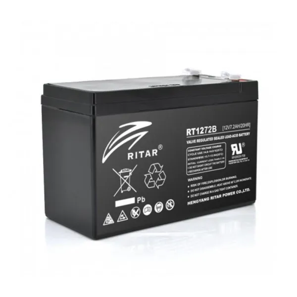 Ritar AGM RT1272B, 12V-7.2Ah - аккумуляторная батарея для ИБК изготовленна по технологии AGM (электролит абсорбирован в специальном пористом сепараторе).