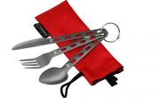 Набор столовых складных приборов (ложка-вилка-нож) туристический. Набор упакован в удобный, качественный чехол из прочного материала 600D Polyester Rip Stop