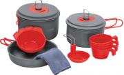 Набор посуды из анодированного алюминия для 3-4 человек, состоит из двух котелков, крышки-сковородки. В набор также входят комплект из мисок и чашек для четырех человек, черпак и тряпка для мытья посуды. Набор упакован в удобный сетчатый чехол.