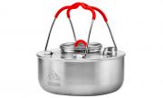 Чайник туристичний з кришкою. Ручки чайника та кришки мають захисні силіконові накладки, які не нагріваються. Чайник упакований в зручний сітчатий чохол.
