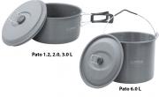 Котелок туристический с крышкой. В середину "PATО 6,0L" можно вложить котелок "PATO 1,2L", "PATO 2,0L" и "PATО 3,0L", набoры посуды "TRI" или "QUATRO". Котелок упакован в удобный сетчатый чехол.