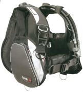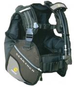 Этот стабилизирующий регулируемый компесатор изготовлен из прочного материала кордура 1000. Имеет встроенную грузовую систему - два сбрасываемых кармана спереди на 5.5 кг каждый и два кармана для отвеса по 1 кг. сзади. Компенсатор имеет три кармана на молнии. Гладкая спинка компенсатора снабжена защитным покрытием. Шланги удобно и надежно фиксируюся при помощи держателей непосрественно спереди. 6 стальных дополнительных колец расположены в основных стратегических точках жилета. Инфлятор имеет две кнопки для контроля BCD. Два выпускных дополнительных клапана установлены сзади в нижней части жилета.