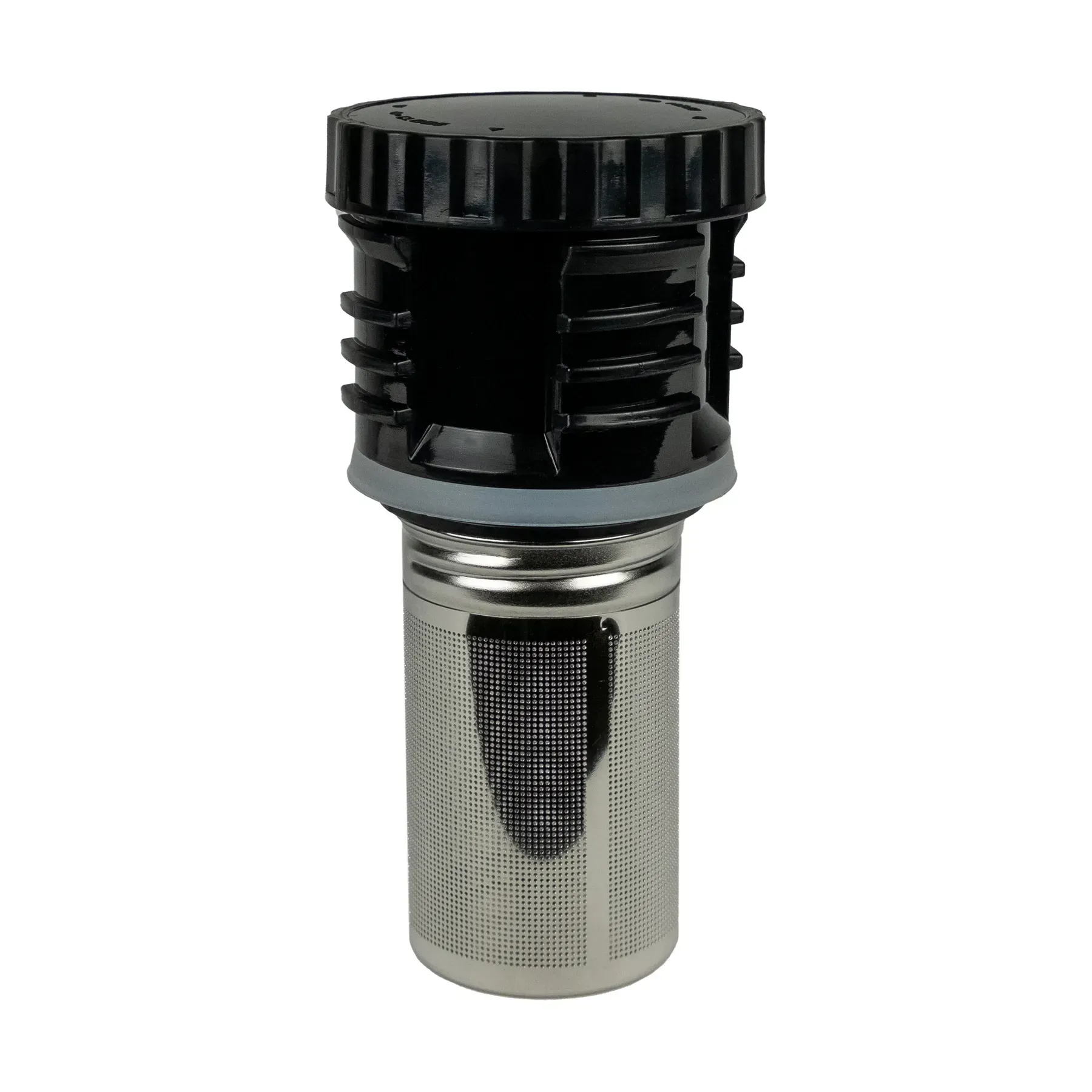 Пробка с щелевым типом налива к нижней части которой прикручивается цилиндрическое металлическое ситечко для заварки (чай или кофе).
