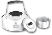 Легкий походный чайник из анодированного алюминия объемом 1,6 литр позволяет быстро вскипятить воду для чая или приготовленя еды, экономно используя походную горелку. Благодаря специальному покрытию чайник имеет не только привлекательный вид, но и надежно защищен от коррозии металла (основной причиной которой является контакт алюминия с поваренной солью или морской водой). Чтобы крышка была всегда рядом, чайник хранится и транспортируется в сеточном чехле.