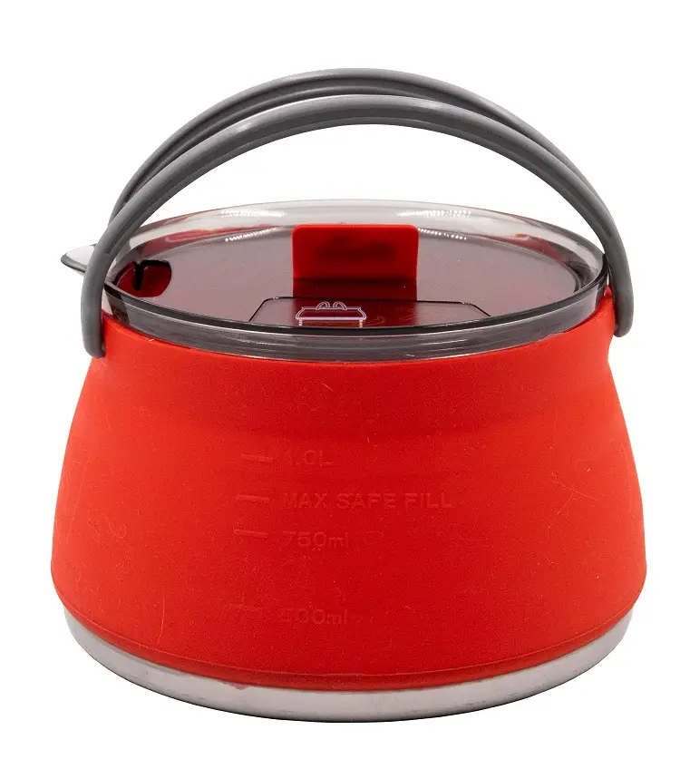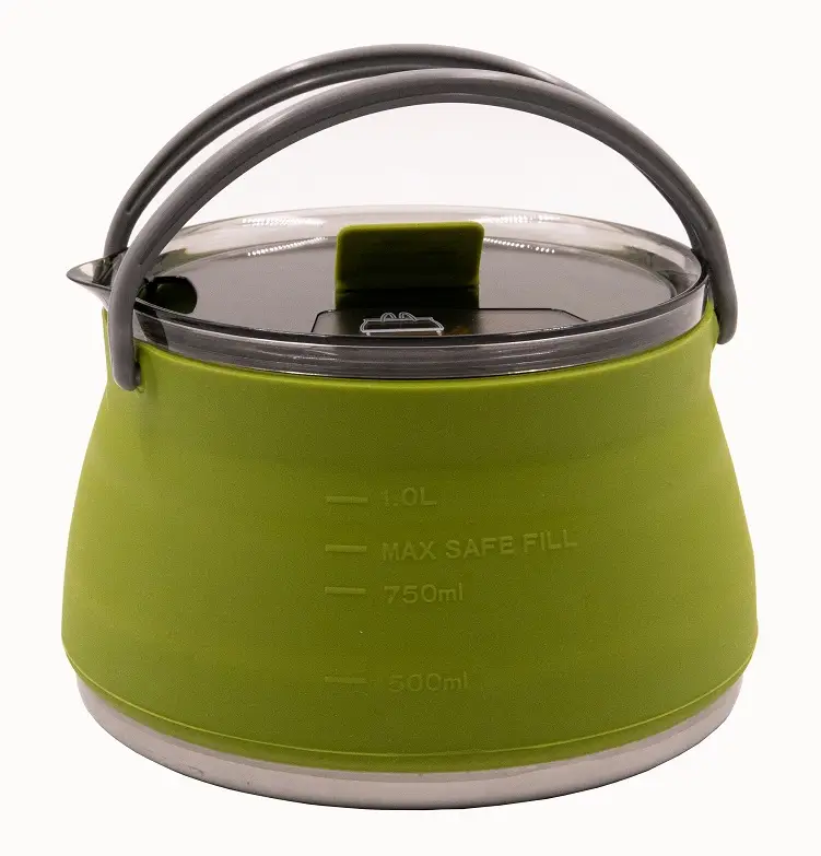 Легкий компактный складной туристический чайник со стенками из термостойкого пищевого силикона и дном из нержавеющей стали.