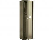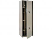 Сейф "САФАРИ" предназначен для хранения 4 ружей, длиной до 1450 мм.Замки: Кодовый электронный PS 300, class A - EN1300:2004, ECB-S C10 (Россия). 3х-сторонняя ригельная система запирания, защита замка от высверливания. Комплектация: трейзер + 3 полки, переставляемые по высоте. Толщина лицевой панели - 5 мм, боковых стенок - 2,8 мм.