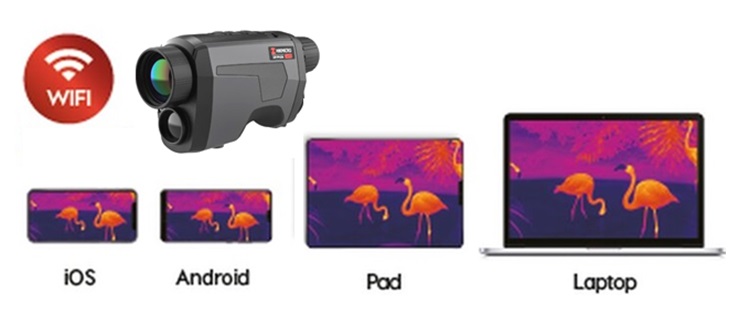 Модуль Wi-Fi, вбудований фото - відеорекордер. Мультимедійні опції дозволяють записувати на відео, все що потрапляє в поле зору приладу. Дані зберігаються на внутрішньому носії об'ємом 16 Гб. Місткість дає можливість зберегти більше 7 годин відео і кілька десятків тисяч фото. Формати даних: для відео .mp4, для фото .jpg. Забрати файли можна за прямим кабельному з'єднанню інтерфейс USB Type-C (кабель в комплекті). Тепловізійний монокуляр підтримує роботу в режимі «Точка доступу», передаючи по Wi-Fi сигнал потокового відео на телефони або планшети. Одночасно кілька користувачів можуть у режимі відеоконференції стежити за тим, що потрапляє в поле зору приладу.