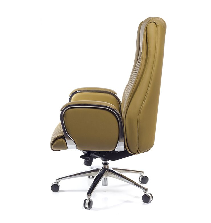 Цельнолитая крестовина из полированного алюминия обладает высокой прочностью и внешней привлекательностью. Отсутствие сварных швов позволяет такой крестовине выдерживать большую нагрузку и служить надёжной опорой даже такому массивному креслу, как Арминг. Поверхность крестовины отполирована до блеска, она не боится царапин и мелких повреждений от постоянного контакта с обувью. Роликовые опоры, установленные в крестовине, обеспечивают креслу необходимую мобильность: кресло легко передвигается по помещению, несмотря на внушительные габариты. Для данной модели рекомендуем приобрести ролики с хромированными накладками, которые больше подходят под общий дизайн кресла. Также существуют рекомендации по подбору роликов под конкретное напольное покрытие помещения: для ковролина и других мягких покрытий подойдут пластиковые ролики, а для паркета или ламината - прорезиненные. Кресло имеет внушительные габариты и высокую спинку, отлично подойдёт для покупателя высокого и выше среднего роста. Высокий деревянный каркас и ярко выраженный поясничный валик обеспечивают спине комфортную и правильную опору. Деревянный каркас обеспечивает креслу необходимую прочность, а мягкое поролоновое наполнение формирует комфортную посадку. Благодаря декоративной накладке с наполнением из мебельного силикона, присаживаясь в кресло вы ощущаете приятный обволакивающий эффект домашнего уюта и роскоши.