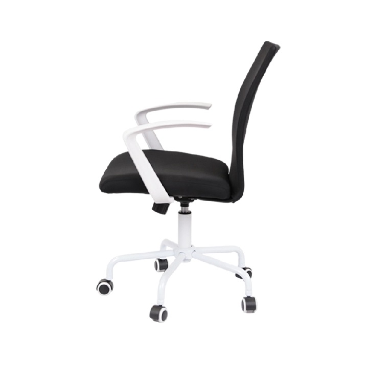 Подлокотники. У данной модели стильные массивные подлокотники оригинальной формы из белого пластика. Они имеют горизонтальную рабочую поверхность, что позволяет удобно разместить руки и снять излишнюю нагрузку с плечевых суставов. Изящная крестовина кресла Арси изготовлена из металла, окрашенного в белый цвет. Крестовина 5-ти лучевая, укомплектована роликовыми опорами. Унивесальные прорезиненные ролики обеспечат креслу необходимую мобильность и подойдут для всех типов напольных напольных покрытий. Удобная эргономичная спинка имеет прогиб в поясничной области, который обеспечивает вашей спине комфортную поддержку, а вам хорошее самочувствие даже в конце насыщенного рабочего дня. В сидении кресла используется прочное основание из гнутоклееной фанеры, которое совместно с поролоновым наполнением формируют удобную посадку. Углубление в центральной части сидения, и скошенный передний край формируют правильную и удобную посадку и защиту от пережимания сосудов ног. Посадка средней жесткости поможет устроиться в кресле комфортно, но, в то же время, будет поддерживать тело в тонусе.