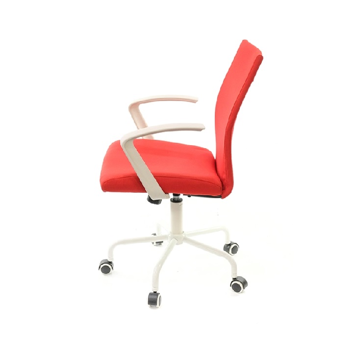 Подлокотники. У данной модели стильные массивные подлокотники оригинальной формы из белого пластика. Они имеют горизонтальную рабочую поверхность, что позволяет удобно разместить руки и снять излишнюю нагрузку с плечевых суставов. Изящная крестовина кресла Арси изготовлена из металла, окрашенного в белый цвет. Крестовина 5-ти лучевая, укомплектована роликовыми опорами. Унивесальные прорезиненные ролики обеспечат креслу необходимую мобильность и подойдут для всех типов напольных напольных покрытий. Удобная эргономичная спинка имеет прогиб в поясничной области, который обеспечивает вашей спине комфортную поддержку, а вам хорошее самочувствие даже в конце насыщенного рабочего дня. В сидении кресла используется прочное основание из гнутоклееной фанеры, которое совместно с поролоновым наполнением формируют удобную посадку. Углубление в центральной части сидения, и скошенный передний край формируют правильную и удобную посадку и защиту от пережимания сосудов ног. Посадка средней жесткости поможет устроиться в кресле комфортно, но, в то же время, будет поддерживать тело в тонусе.