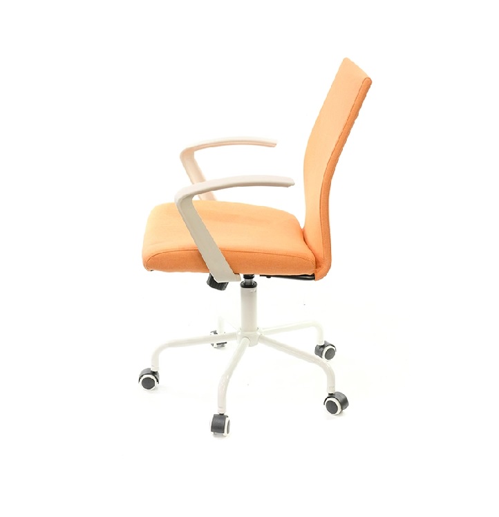 Подлокотники. У данной модели стильные массивные подлокотники оригинальной формы из белого пластика. Они имеют горизонтальную рабочую поверхность, что позволяет удобно разместить руки и снять излишнюю нагрузку с плечевых суставов. Изящная крестовина кресла Арси изготовлена из металла, окрашенного в белый цвет. Крестовина 5-ти лучевая, укомплектована роликовыми опорами. Унивесальные прорезиненные ролики обеспечат креслу необходимую мобильность и подойдут для всех типов напольных напольных покрытий. Удобная эргономичная спинка имеет прогиб в поясничной области, который обеспечивает вашей спине комфортную поддержку, а вам хорошее самочувствие даже в конце насыщенного рабочего дня. В сидении кресла используется прочное основание из гнутоклееной фанеры, которое совместно с поролоновым наполнением формируют удобную посадку. Углубление в центральной части сидения, и скошенный передний край формируют правильную и удобную посадку и защиту от пережимания сосудов ног. Посадка средней жесткости поможет устроиться в кресле комфортно, но, в то же время, будет поддерживать тело в тонусе.