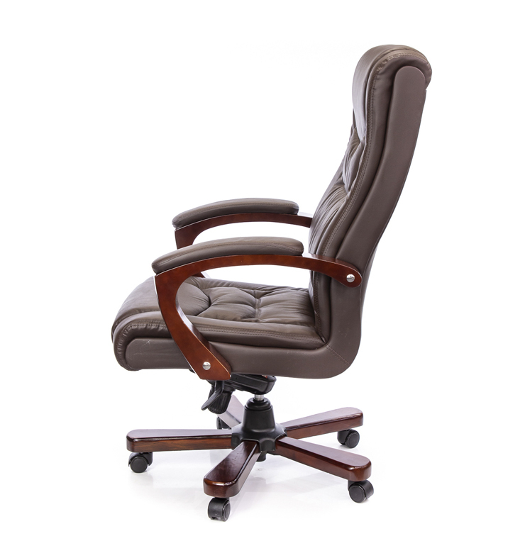 Крестовина. Крестовина изготовлена из натурального дерева и окрашена в тон подлокотников. Внутри крестовина имеет прочный металлический каркас, который спрятан за красивыми декоративными накладками из натурального дерева - благодаря этому креслу обеспечена надёжная и устойчивая опора. Поверхность тщательно отполирована и покрыта противоударным лаком красивого каштанового оттенка. Допустимая нагрузка на такой тип крестовины - 120 кг. Не смотря на свою внешнюю массивность кресло легко передвигается по помещению с помощью роликов. Ролики в данном кресле пластиковые со специальными накладками - юбочками. Они защищают вашу обувь от царапин и мелкого мусора, который может появится на роликах во время передвижения по помещению. Кресло Артур достаточно массивное, имеет широкую посадку. Высокая спинка имеет интегрированный подголовник. Небольшой изгиб монолитного основания кресла в поясничной области обеспечивают комфортную поддержку позвоночника и частично снимает нагрузку. Специальные валики по краю кресла и сидения обеспечивают комфортную боковую поддержку тела для удобства и сохранения правильной осанки. В передней части сидения есть специальный скос для того, чтобы не сосуды ног не пережимались. Благодаря этому ноги не затекают и не устают во время длительной работы в кресле.