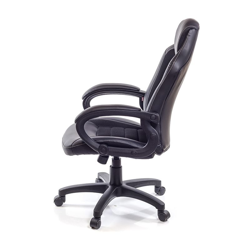 В данной модели установлены массивные пластиковые подлокотники округлой формы. Мягкие накладки подарят вашим рукам комфортную и надёжную опору. Красивый чёрный цвет пластика отлично гармонирует как с обивкой, так и с крестовиной, что делает внешний вид кресла лаконичным и завершённым. Высота подлокотников позволяет задвинуть кресло под рабочий стол стандартной высоты, что освобождает окружающее пространство. Пластиковая крестовина такого же чёрного цвета изготовлена из прочного толстостенного пластика. Это позволяет ей выдерживать нагрузку более 120 кг. Поверхность материала крестовины текстурная, что помогает более удобно расположить ноги, чтобы они не скользили, и защищает поверхность от мелких царапин. Пластиковые ролики обеспечат креслу необходимую мобильность и подойдут для мягких напольных покрытий, например, для ковролина. Для паркета или ламината идеально подойдут прорезиненные ролики, которые дополнительно можно заказать. Кресло Астон небольшого размера, но это не отражается на его качестве и комфортности. Сидение умеренно мягкое, имеется ощутимая боковая поддержка, как на спинке, так и на сидении для удобной фиксации правильного положения и сохранения осанки. Спинка оснащена интегрированным подголовником. Специальное углубление в сидении кресла и скошенный передний край уберегают ноги от затекания и усталости.