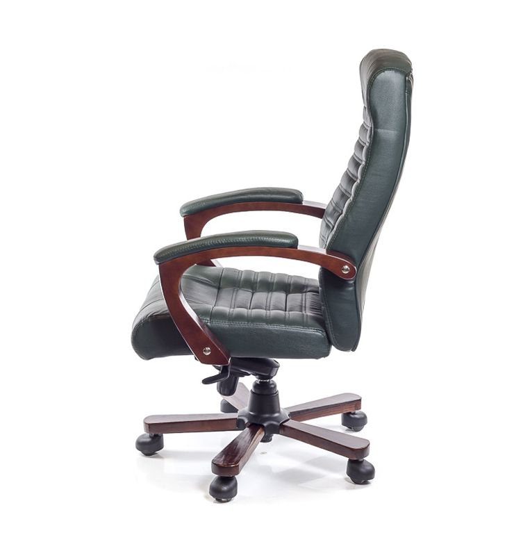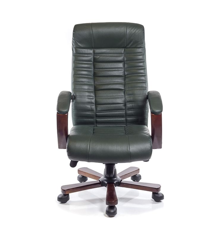 Престижность данного кресла подчеркивают форменные, широкие подлокотники. Их Г-образный изгиб и размер подобраны так, чтобы рукам было комфортно облокачиваться на них. Натуральное тонированное дерево создает ощущение домашнего уюта и теплоты. Мягкие накладки защищают руки от контакта с твердой поверхностью и дарят дополнительный комфорт. Крестовина у данной модели также изготовлена из тонированного дерева. Красоту текстуры и гладкость поверхности дерева долгие годы будет хранить лаковое покрытие. Оно достаточно прочное, чтобы предотвратить возникновение мелких сколов и царапин в процессе эксплуатации. Под деревянными накладками - прочный металлический каркас, который обеспечит креслу и необходимую устойчивость, и прочность. Благодаря роликовым опорам кресло достаточно мобильное, несмотря на вес и большие габариты. Кресло Атлант достаточно массивное, с высокой спинкой, а значит подойдет для владельца высокого роста. Каркас спинки имеет эргономичный изгиб в поясничной области, что обеспечит вашей спине комфортную поддержку и снимет нагрузку с позвоночника. Сидение имеет специальное углубление в центре и утолщение по переднему краю. Это сделано для того, чтобы посадка была комфортной, а сосуды на ногах не пережимались. Трудиться в таком кресле будет комфортно и продуктивно на протяжении всего рабочего дня.