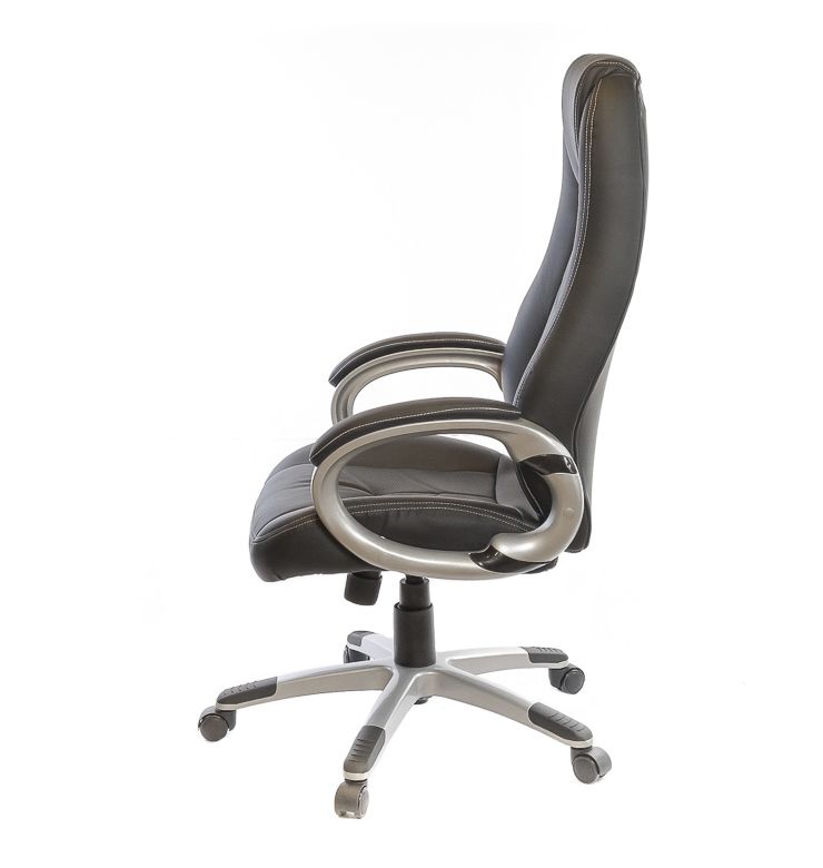 Современное кресло Брук одето в такой же современный и высокотехнологичный наряд из экокожи приятного шоколадного цвета. Этот материал имеет натуральную хлопчатобумажную основу, что улучшает его "дышащие свойства". В местах максимального контакта обивки с телом есть вставки из перфорированной экокожи, что увеличивает гигроскопичность и воздухопроницаемость материала, а в следствие и повышают комфортность кресла. Механизм качания, установленный в данной модели, даст возможность чередовать работу или игру с приятными сеансами расслабления. Управлять этим механизмом очень просто с помощью рычага под сидением. Газлифт поможет отрегулировать до оптимальной, для вашего роста, высоты сидения. В верхнем положении кресло имеет высокую посадку, что подойдёт людям среднего роста. Регулировка механизма качания под вес сидящего, осуществляется с помощью специального винта под сидением. Пружина зажимается под больший вес и, наоборот, ослабляется под меньший. У данной модели пластиковые подлокотники имеют овальную форму, на которую очень удобно ложатся руки, что обеспечивает им надёжную опору. Мягкие накладки, обтянутые материалом в тон обивки, создают вашим рукам дополнительный комфорт.