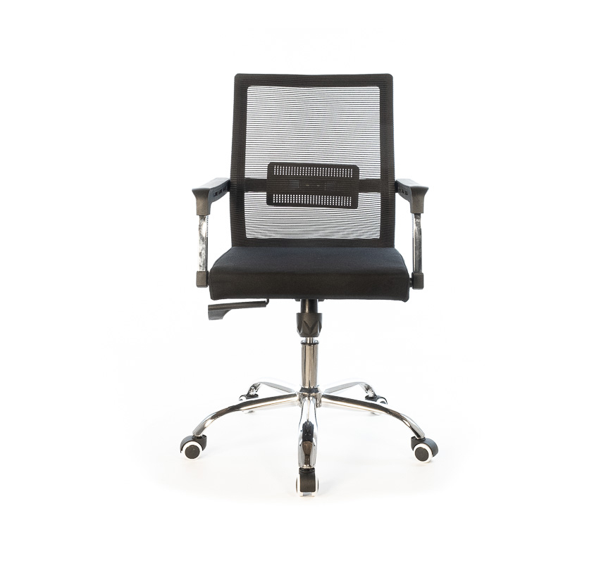 Крестовина. Блестящая хромированная крестовина изготовлена из металла. Она цельнолитая, а значит не только красивая внешне, но и очень прочная благодаря отсутствию сварных швов. Это позволяет ей выдерживать нагрузку до 150 кг. Хромированное покрытие очень прочное, не царапается и стойкое к повреждениям. Это позволит сохранить привлекательный внешний вид кресла надолго. По желанию вместо обычных пластиковых роликов в данной модели можно установить ролики с хромированными накладками под стиль крестовины или прорезиненные ролики для твердых напольных покрытий. Кресло имеет мягкую и достаточно широкую посадку. В таком кресле удобно сможет расположиться человек любой комплекции. В сидении использован монолитный деревянный каркас и толстый слой качественного мебельного поролона. Форму спинки создает и поддерживает пластиковый каркас, который имеет прогиб в поясничной области, который снимает нагрузку с позвоночника и помогает поддерживать правильную осанку. Для дополнительной поддержки поясницы и защиты сетки от проседания использована пластиковая решетчатая пластина. Кресло имеет также модификацию Бруно Нет CF на полозьях для оформления всего интерьера в едином стиле.